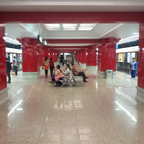 Métro en Chine. Système particulièrement efficace et peu onéreux pour se déplacer. Comptez 2 à 4 yens maximum par voyage. Les noms des stations sont la transcription en alphabet romain des signes chinois et diffèrent parfois de la traduction en anglais des noms chinois. Les cartes en anglais que vous trouverez un peu partout en vente pour 8 ou 10yens pourront vous induire en erreur mais non pour longtemps.