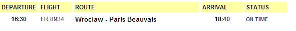Décollage annonce 16h30. Arrivée prévue : 18h30.