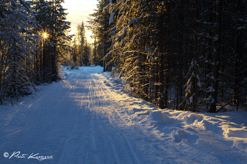 -35 au thermomètre. 6h du matin. Un air sans nuages. Joyeux présage. Un air si vibrant qu’il semble fait de mille aiguilles. Respirer m’est un plaisir douloureux. C’est comme une bouffée de pureté après une trop longue apnée dans les cités. Ce froid, c’est un peu comme le parfait chez moi. La neige recouvre les immensités. Forêts et plaines sont inondés d’un blanc océan. Fragile cocaïne.