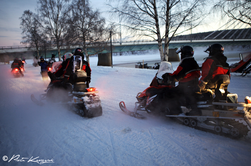 On monte sur les motoneiges comme d’orgueilleux cow-boys. Les moteurs vrombissent. Les corps tremblent presque d’excitation. On reçoit quelques instructions que l’on écoute d’une oreille. Pas plus de 60km/h sur les espaces dégagés. Pas plus de 30km/h en forêts. Il y a une seule femme dans le groupe. Elle fera route avec moi. La piste verglacée m’apporte le même plaisir qu’un scooter des mers, quelques couches de vêtements en plus. Je suis, sagement, durant quelques temps, les consignes. J’endors ainsi la méfiance de ma passagère. Et puis je me laisser aller.