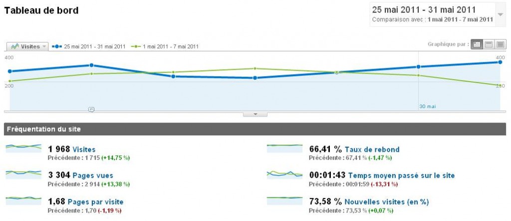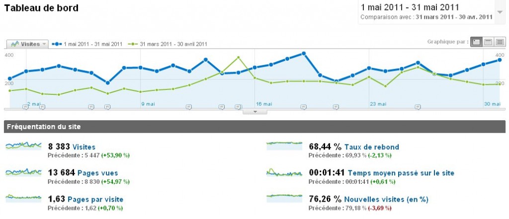 De 245 visiteurs/jj en moyenne au début du mois, on passe à 281 visites/j (+14,75%) en moyenne. Une petite progression mais une progression tout de même !