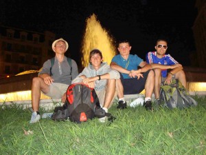 Pour les vacances d’été de 2009, nous avions envie de partir quelque part à vélo, mais plus loin, si possible à l’étranger et nous nous sommes décidés à partir à Barcelone car aucun d’entre-nous n’y avait été auparavant. Le plus compliqué était que certains d’entre-nous travaillaient et qu’il n’était pas vraiment possible de partir tout le mois d’août, alors nous nous sommes donnés une moyenne de plus ou moins 80km, on est tous partis chacun notre tour en train afin de rattraper celui ou ceux qui étai(en)t parti(s) avant nous. C’est ainsi qu’un de mes amis est directement parti de Lille, la semaine suivante, un autre ami l’a rejoint à Clermont-Ferrand, puis un ami et moi les avons rejoints une semaine plus-tard à Perpignan afin de partir à quatre vers Barcelone.