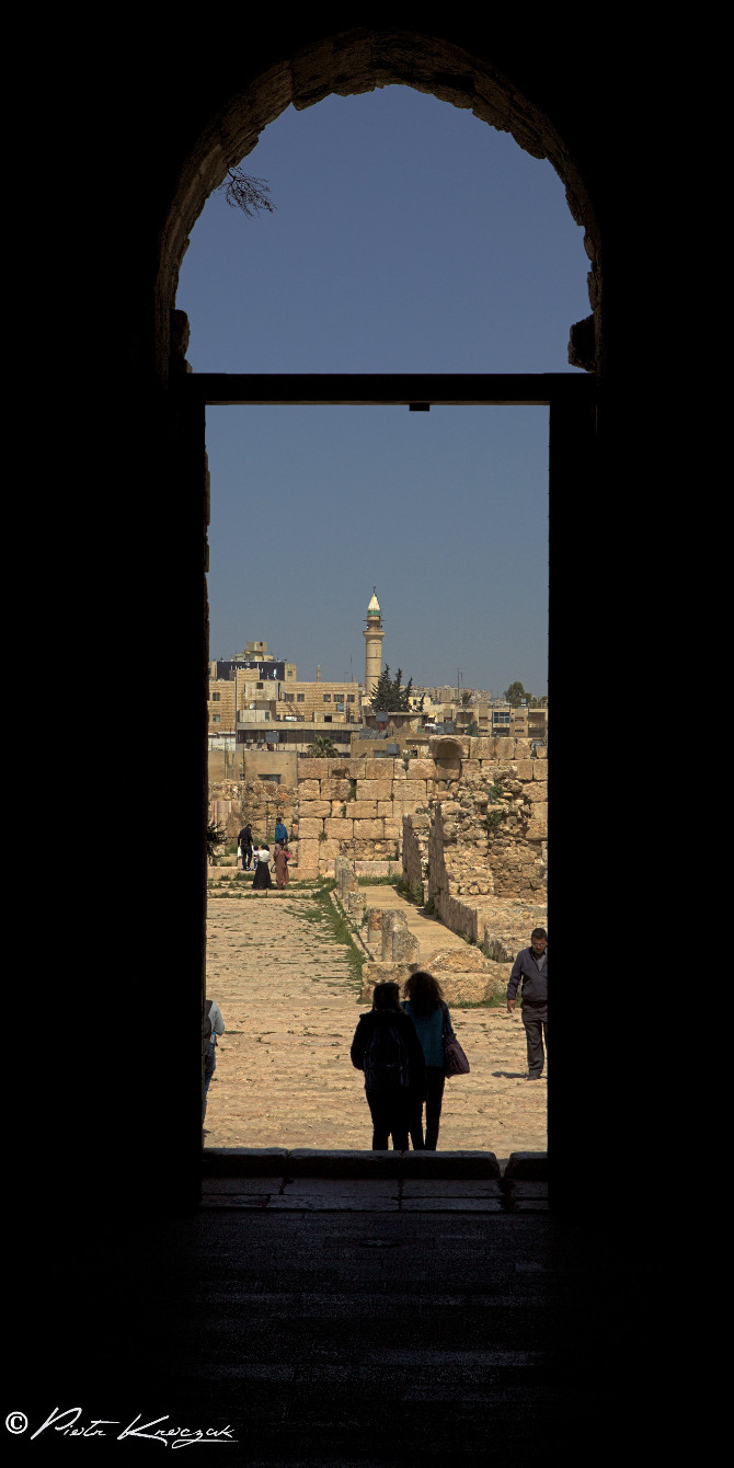 Un îlot d’histoire au milieu de la ville moderne. On papillonne d’une colonne à une gravure. Le drapeau jordanien tourbillonne sur son mat. La ville, sous les assauts du soleil de midi oscille entre l’ocre et le blanc, comme indécise.