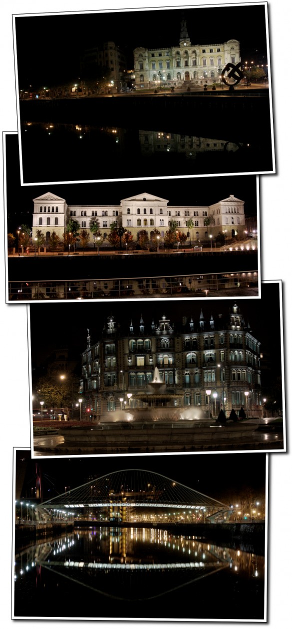Les premiers lampadaires s’allument sur Bilbao, en Espagne.  “Nous sommes en retard” nous dit le guide, pressant le pas.