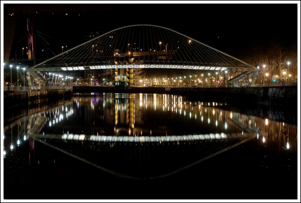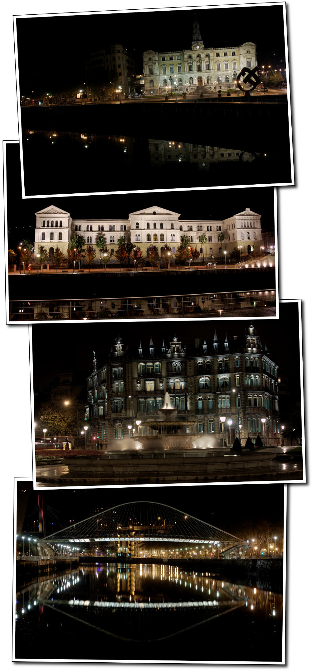 Les premiers lampadaires s’allument sur Bilbao, en Espagne. “Nous sommes en retard” nous dit le guide, pressant le pas.