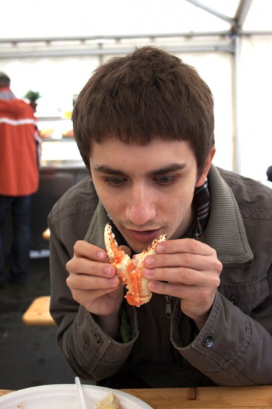 Lors du repas, je menais un combat difficile avec le crabe qui bien que mort gagna la rude bataille en finissant malgré mon acharnement pratiquement entier dans mon assiette.