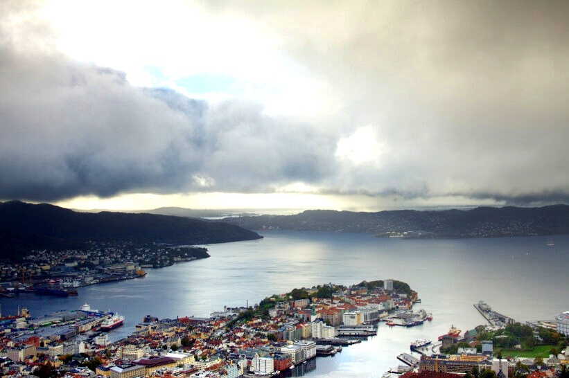 Cette atmosphère paisible, provinciale presque, se retrouve dans Bergen. Bergen, deuxième ville du pays après Oslo, la capitale, ne compte au final que 250 000 habitants avec sa “grande couronne » qui s’étend sur les abords escarpés des fjords alentours. Lorsque le brouillard se lève, en haut du Mont Ulriken, Bergen semble avoir la forme d’une main ouverte sur la mer.