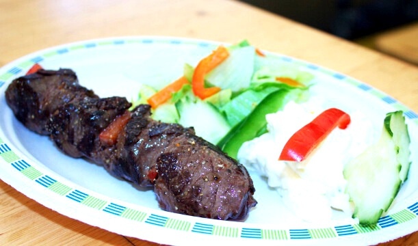 La meilleure partie fut sans nulle doute les brochettes de baleine grillées “rohall steak” dont la viande tendre fut un véritable régal. Je dis “les”car j’ai évidemment englouti par la suite d’autres morceaux pour satisfaire mon besoin en viande rouge en ce pays où le poisson est plutôt roi.