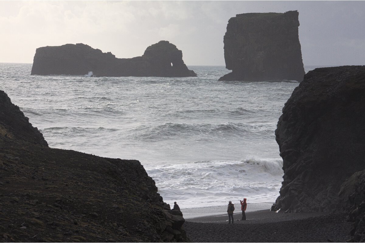 Ces vagues bouillonnantes Ces vagues à la barbe blanche qui se meurent avec éclat sur ce sable noir qui sautille puérilement dans ses bras. On la sent joueuse, la mer islandaise. Comme une jeune adolescente tumultueuse repoussant les appels au jeu de son petit frère ténébreux. Elle s’élance sur les contreforts de pierre, se frayant, patiemment, un chemin dont nul d’entre nous ne sera témoin. Elle sculpte le monde pour les rares trolls éternels.`