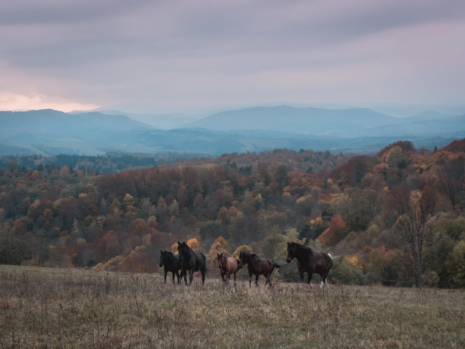 Nous avions rendez-vous avec Jan Myśliński, de l’écurie Tabun, fondée dans les années 1980 par son père Stanisław, la première écurie de chevaux houtsoules des Bieszczady. Ici, les chevaux vivent en plein air toute l’année, sur pâturages ouverts. L’élevage est un engagement, pas un décor : endurcissement au vent, aux saisons, au réel. Et pour les cavaliers aguerris, Tabun mène des raids de plusieurs jours, voir une semaine à travers les montagnes.